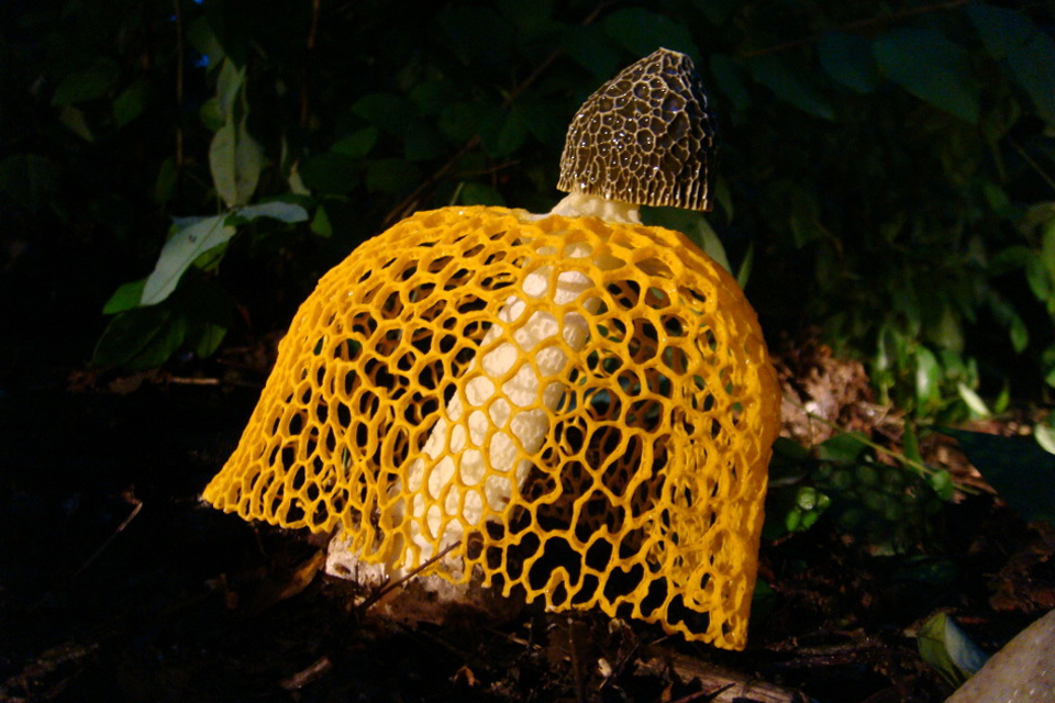 الصورة الأولى بالموضوع هي لنوع نادر من أنواع الفطر "Phallus indusiatus"