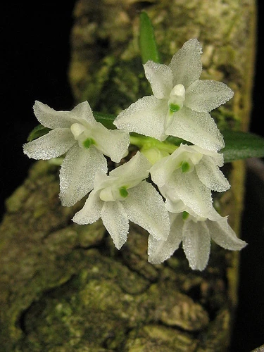 Hymenorchis javanica is an species in the genus Hymenorchis. Plant blooms from spring to summer with 5 to 8 flowers. Plants are found growing in Java at elevations of 900 to 1000 meters Plant grows in intermediate conditions with medium amounts of light. Plants should be potted in medium bark or sphagnum moss. Water everytime when the mix has just about dried. Plant can also be mounted Common Names: The Java Hymenorchis Oeceoclades javanica Teijsm. & Binn. 1862 Saccolabium javanicum (Teijsm...